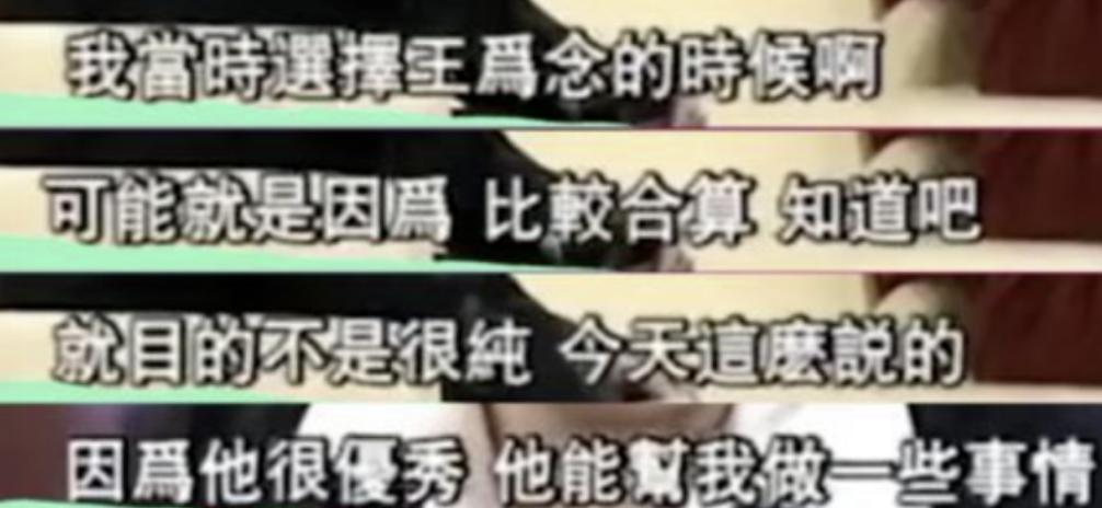 小香玉回憶說:“我當時選擇王爲念的時候,可能是因爲比較合算吧,就是目的不是很純,因爲他很優秀,他能幫我做一些事情。”