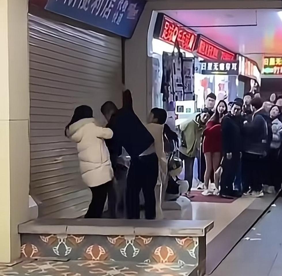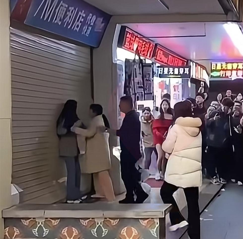 眼看卷閘門就要被打開,丈夫就要和情夫見面,便利店老闆娘不知道哪裏來的洪荒之力,直接掙脫了2名女子的束縛,上前阻攔丈夫。