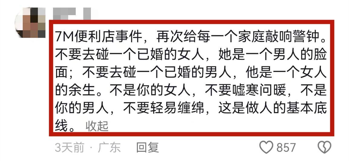 衆多網友紛紛吐槽出軌的便利店老闆娘,對於被辜負的男子,網友深表同情,甚至有網友說“妻子攔門那一刻,就該放手了。”