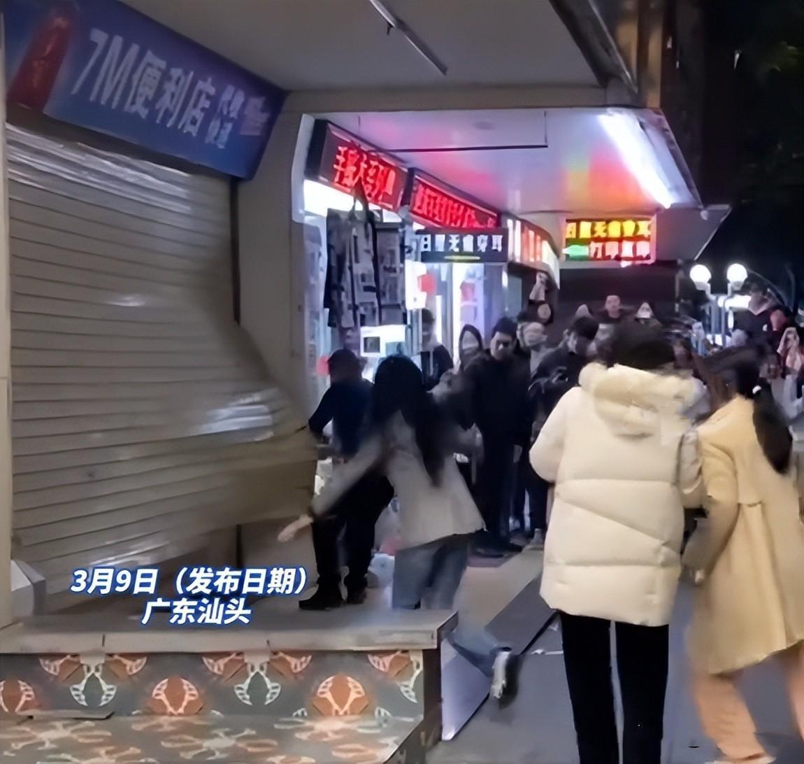 好在有2名女子出現,她們將他的妻子攔住,於是男子便開始手撕卷閘門。