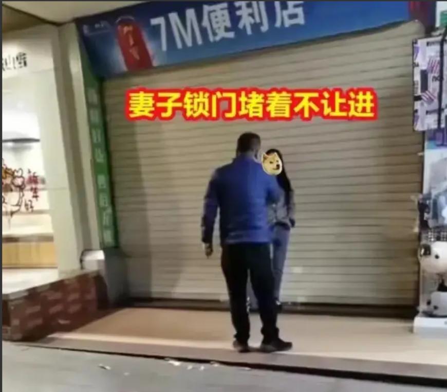 看到丈夫氣勢洶洶的樣子,妻子知道大事不妙,於是趕緊將情夫鎖在便利店裏,拉起了卷閘門。