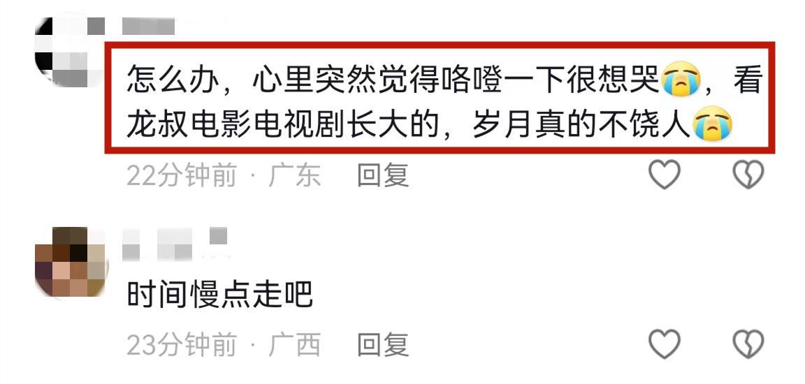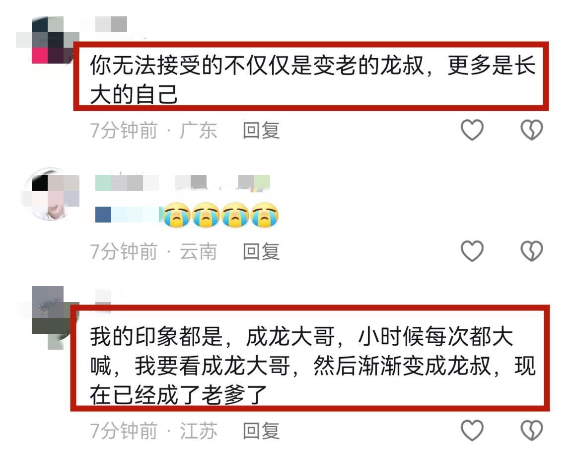 有網友說“怎麼辦?心裏突然覺得咯噔一下很想哭,看龍叔的電影長大的,歲月真的不饒人。”