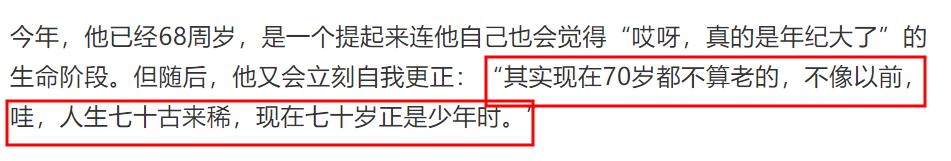 在近幾年接受媒體採訪時,他也不避諱談老的話題,他承認自己身體機能的衰退,承認自己年紀大了。