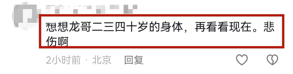 有網友說“想想龍哥年輕時的身體,再看看現在,悲傷啊。”