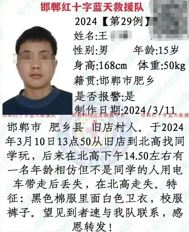根據尋人啓事內容可知,3月10日13點50分,小光從舊店到北高找同學玩,後來在北高被一名年齡相仿但不是同學的人用電車帶走後丟失。
