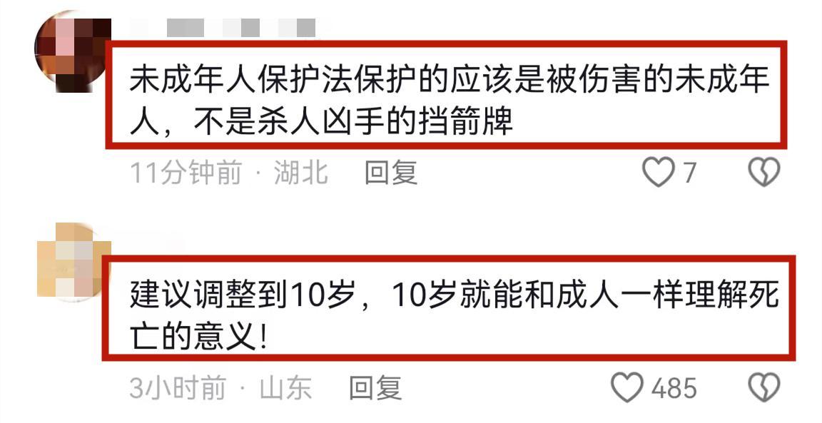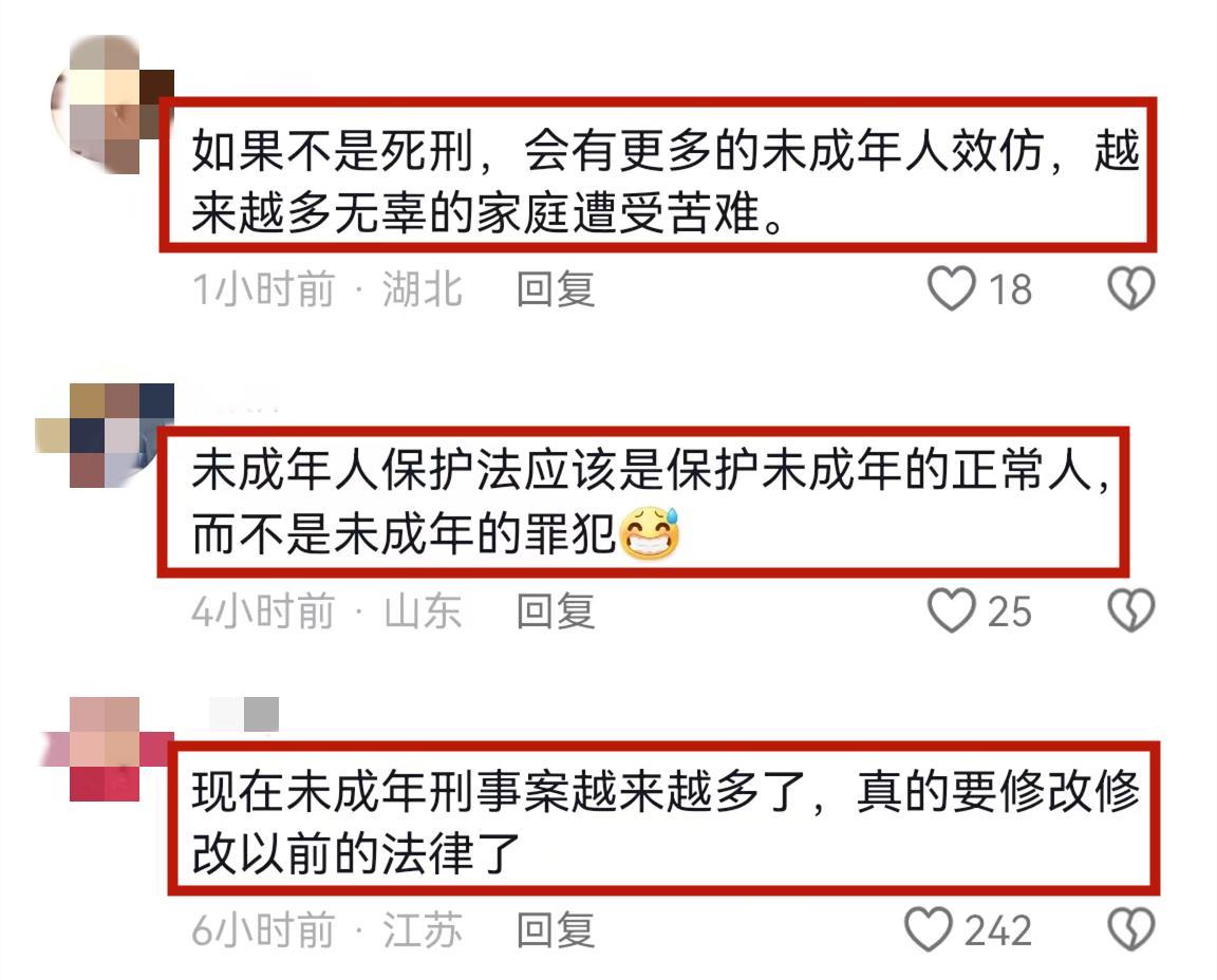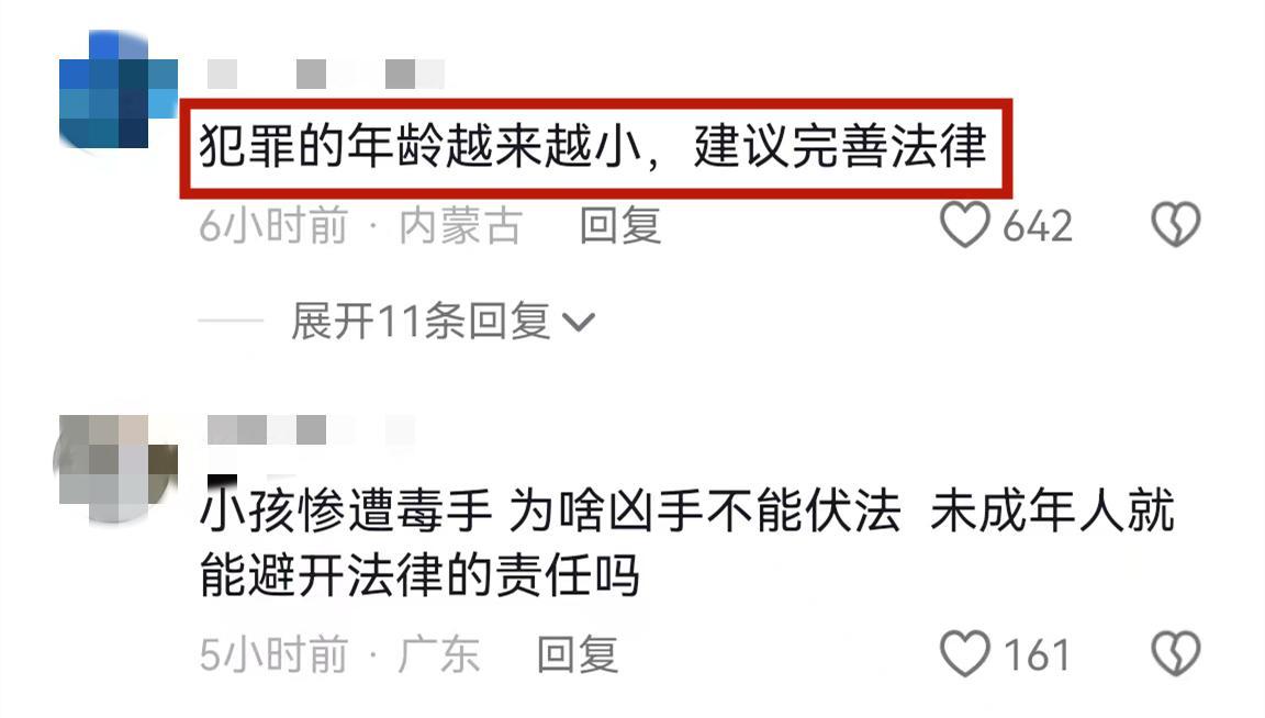 還有網友呼籲修改相關法律,直言現在犯罪的年齡越來越小,已經到了要完善相關法律的時候了。