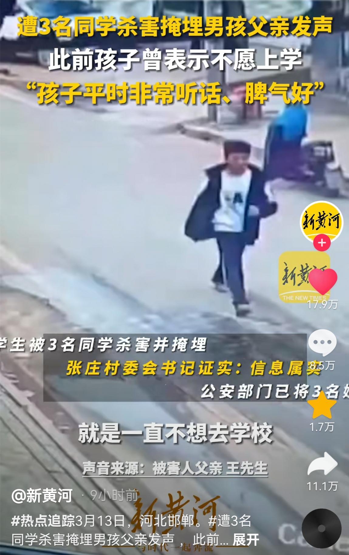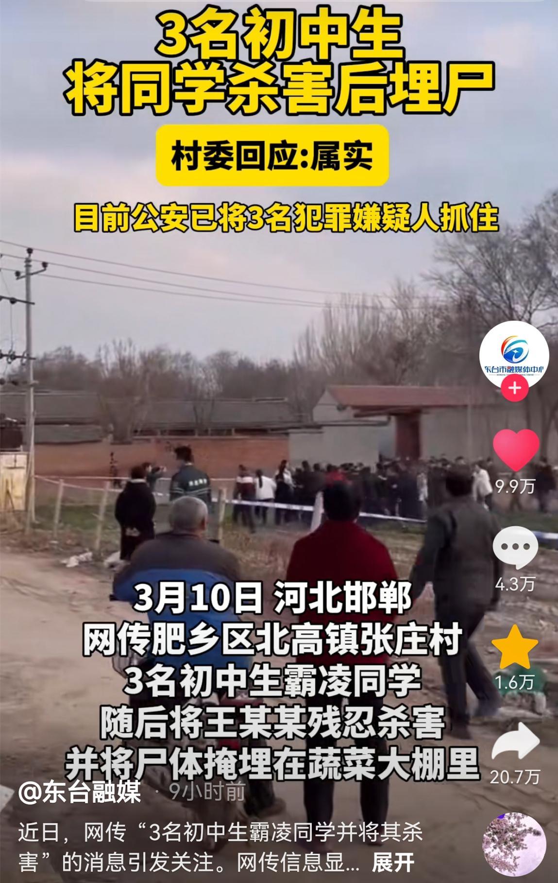 3月13日,網絡瘋傳河北邯鄲市肥鄉區舊店中學的學生小光(化名)被3名同班同學合夥殺害。