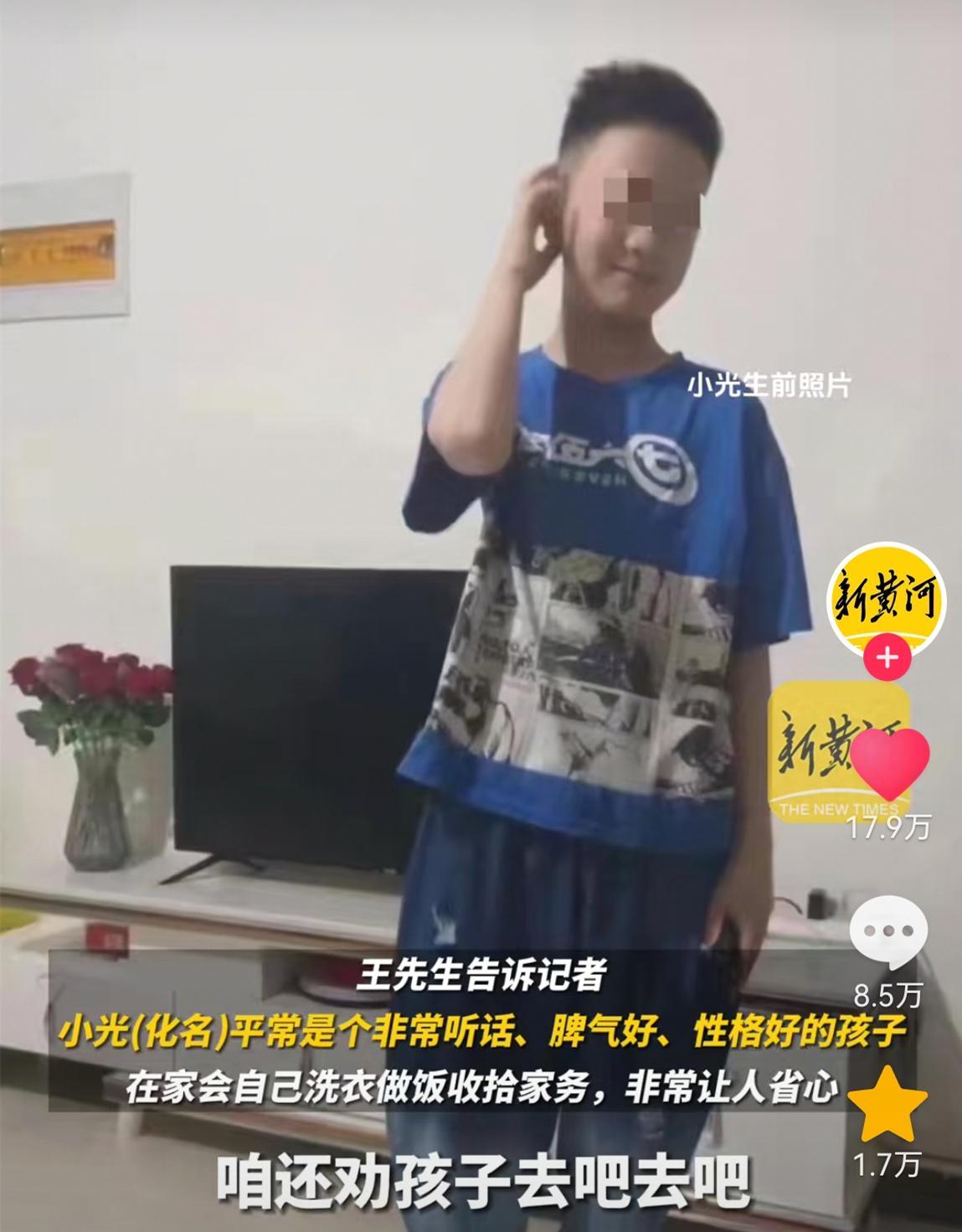 接受媒體採訪時,王先生哽咽着說小光是一個非常聽話、脾氣好、性格好的孩子,在家會自己洗衣做飯收拾家務,非常讓人省心。