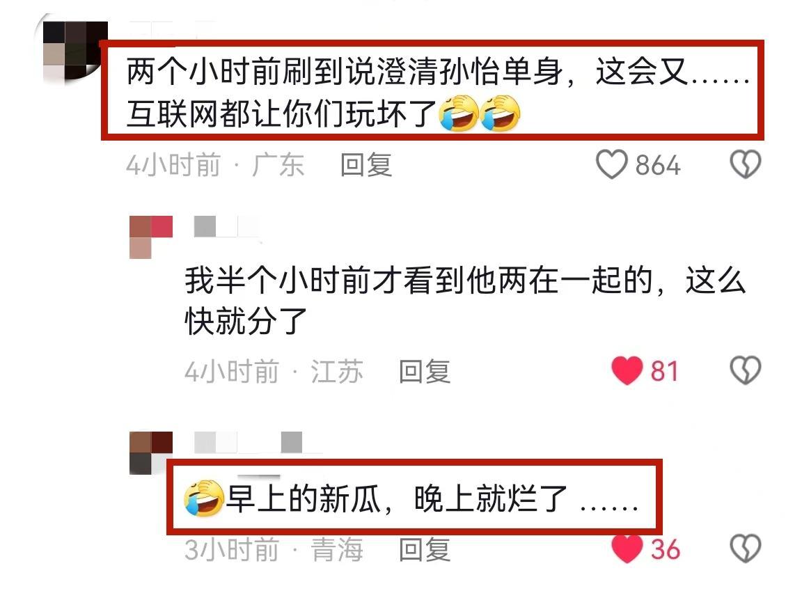 “早上的新瓜,晚上就爛了”這是網友形容女星孫怡戀情瓜的說辭。