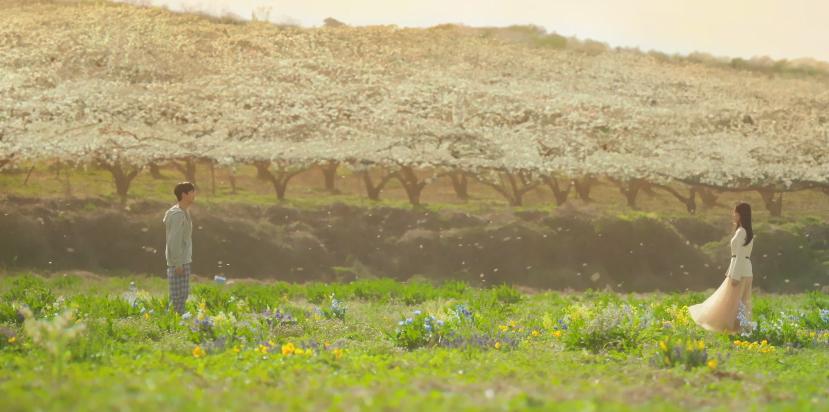男女主角在花田四目相望和擁抱的畫面也是唯美到爆,讓人忍不住嘴角上揚。