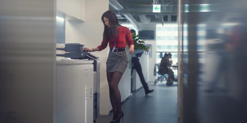她總是用腳踢打印機,導致公司同事都傳來了一個差勁的實習生。
