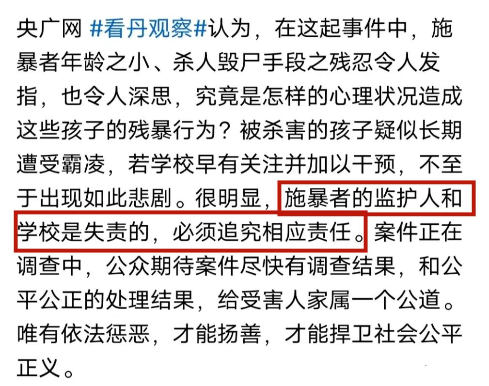 此外,央媒央廣網也進行了銳評,直言小光遇害,3名學生的監護人和學校是失責的,必須追究相應責任。