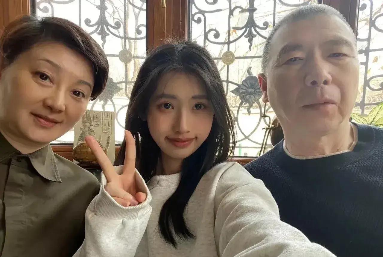 馮小剛爲養女慶生,一家三口溫馨合影,18歲徐朵打扮時尚又漂亮!