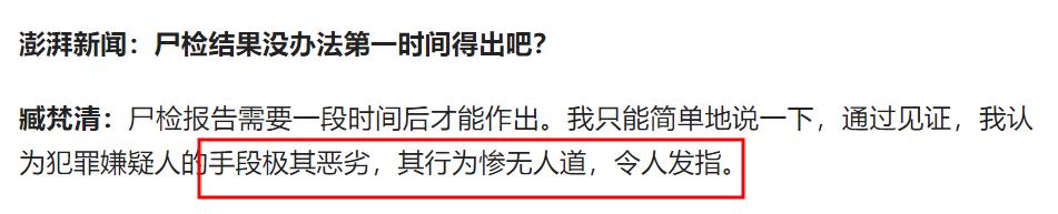 他說犯罪嫌疑人手段極其惡劣,其行爲慘無人道、令人髮指。