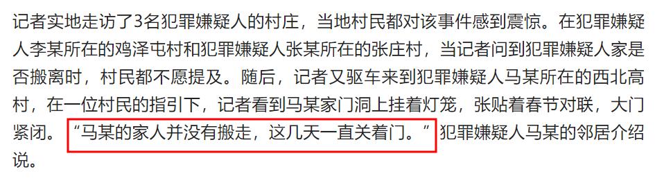 有記者實地走訪了3名學生的村莊,馬某的鄰居告訴記者“馬某的家人並沒有搬走,這幾天一直關着門。”