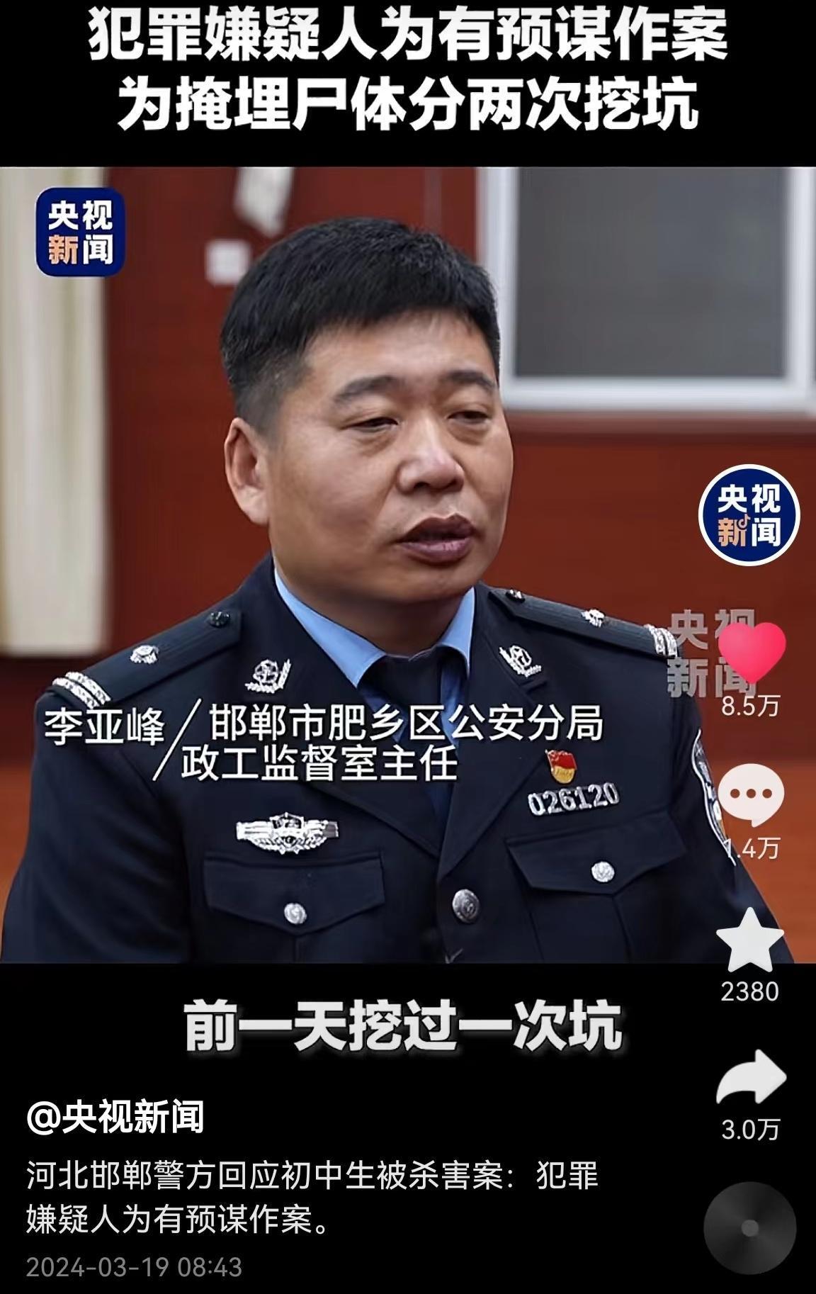 此外,警方在3月19日披露了一個重要信息,3名學生竟然是預謀犯案,埋屍的坑他們挖了兩次,3月9日他們挖了一次,3月10日案發當天他們挖了一次。