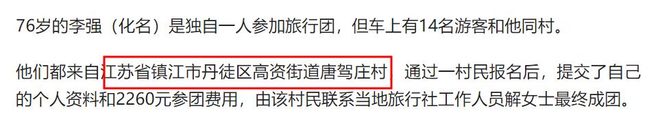 48名遊客和領隊全部來自江蘇省鎮江市。其中大約有15人都來自鎮江市丹徒區高資街道唐駕莊村。