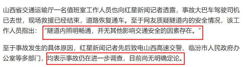 對於此,山西省交通運輸廳的工作人員曾回應“隧道內照明暢通,並無其他影響交通安全的因素存在。”