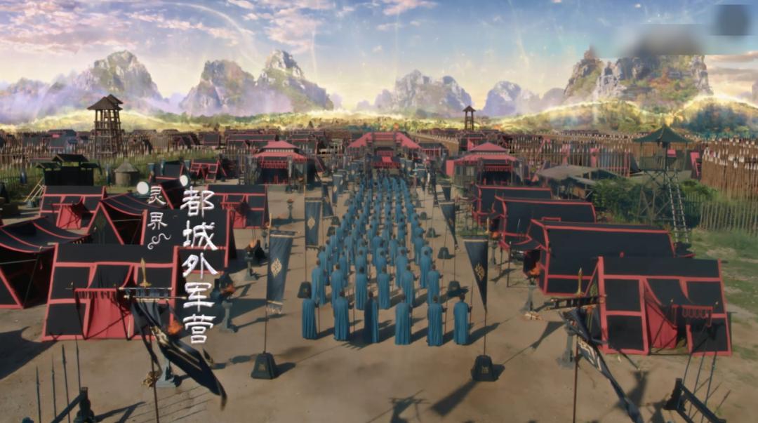比如靈界都城外軍營的場景看上去很二次元,綠幕感很重。