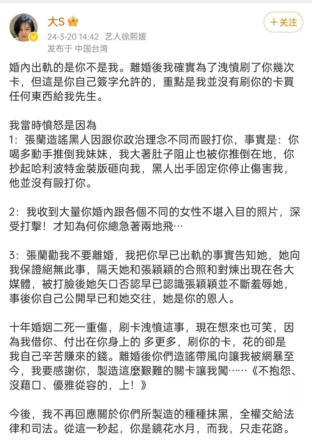 這兩天,汪小菲和前妻又在網上吵的不可開交,尤其這一次,大S親自發文回應,也沒給前夫留面子,各種爆料,澄清沒給具俊燁買禮物,還斥責汪小菲婚內出軌,很多網友站到女方這一邊。