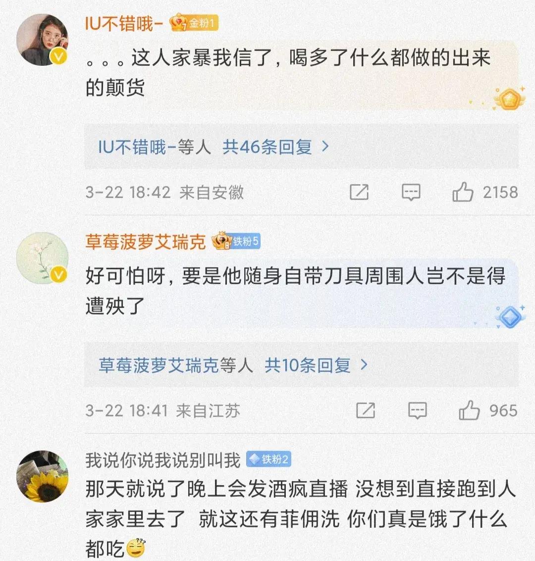 3月22日,汪小菲直播與粉絲互動,面容憔悴,眼神迷離,網友也看出來喝了很多酒,貌似心情不太好,甚至口吐芬芳,一旁的保姆見此情景,害怕鬧出什麼事,影響到形象,趕緊把汪小菲拽到一旁,直接下播。