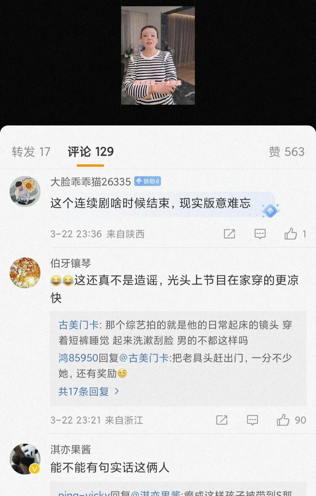 網友們的態度,多數都在看熱鬧,覺得這家的事就像連續劇,不知道什麼時候劇終,喫瓜都覺得累了。