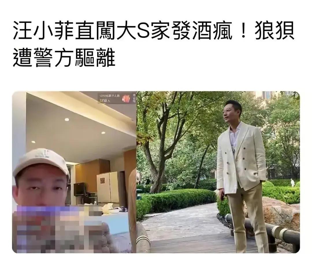 就在汪小菲報警之前,還醉酒闖入大S家中,因爲大吵大鬧,情緒失控,被警察帶離小區,媒體還曬出現場照片,畫面中,汪小菲看起來非常憔悴。