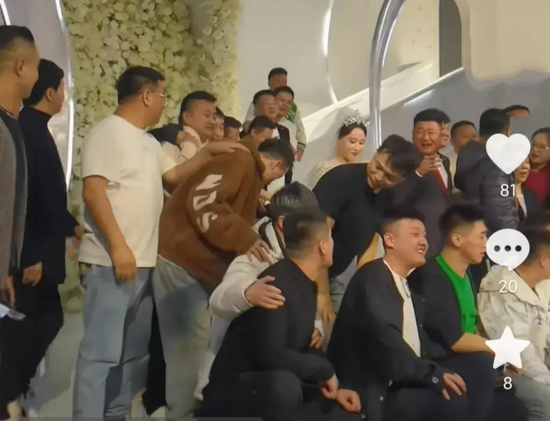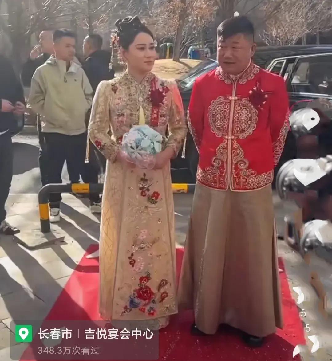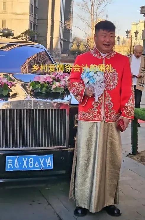 網上曬出董三毛婚禮現場的照片和視頻,畫面中,董三毛穿着十分喜慶,手捧鮮花,在酒店門口焦急的等待新娘的到來,身旁還停着一輛豪車,只不過,門口顯得有點冷清。