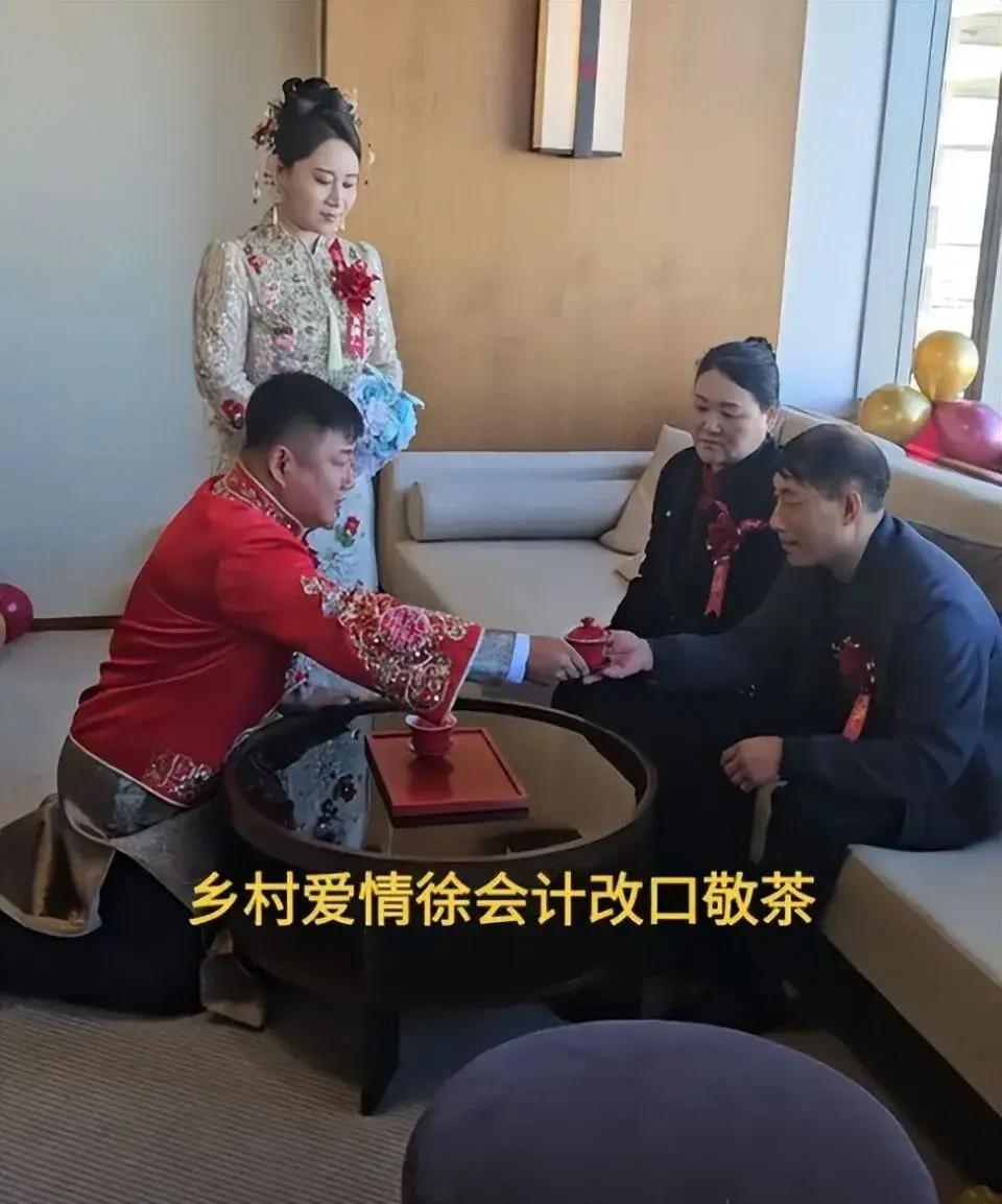 改口的過程非常重要,董三毛誠懇的給岳父岳母敬茶,現場氣氛看着有些緊張,一旁也沒有看到司儀,一般來說,這個畫面都挺歡快,另外,感覺岳父岳母看着比董三毛還要年輕。