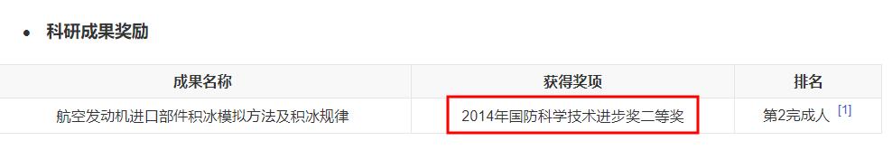 2014年,她作爲第二完成人的一個科研項目,還獲得了2014年國防科學技術進步獎二等獎。