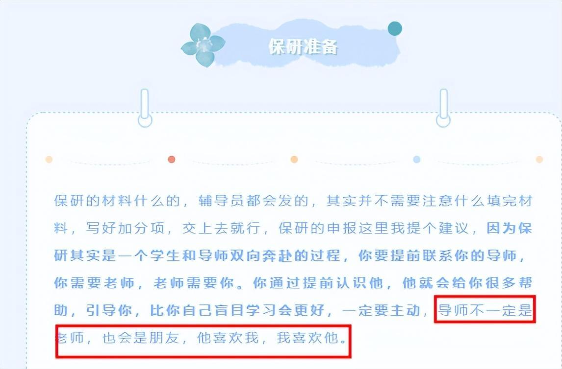 比如在提到保研問題時,他曾說“導師不一定是老師,也會是朋友,他喜歡我,我喜歡他。”而胡教授正是他的導師。