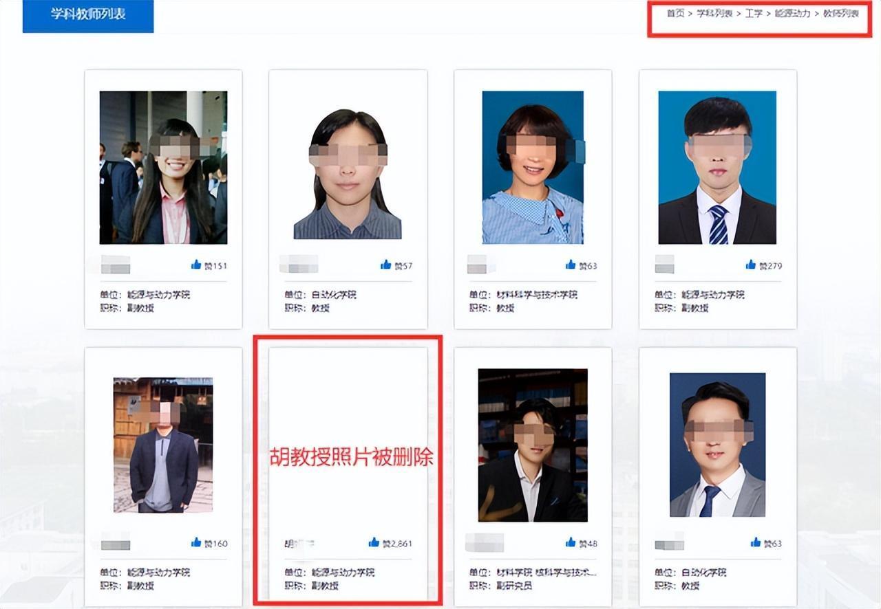 有細心的網友發現,南航已經在學校官網刪除了胡教授的照片。