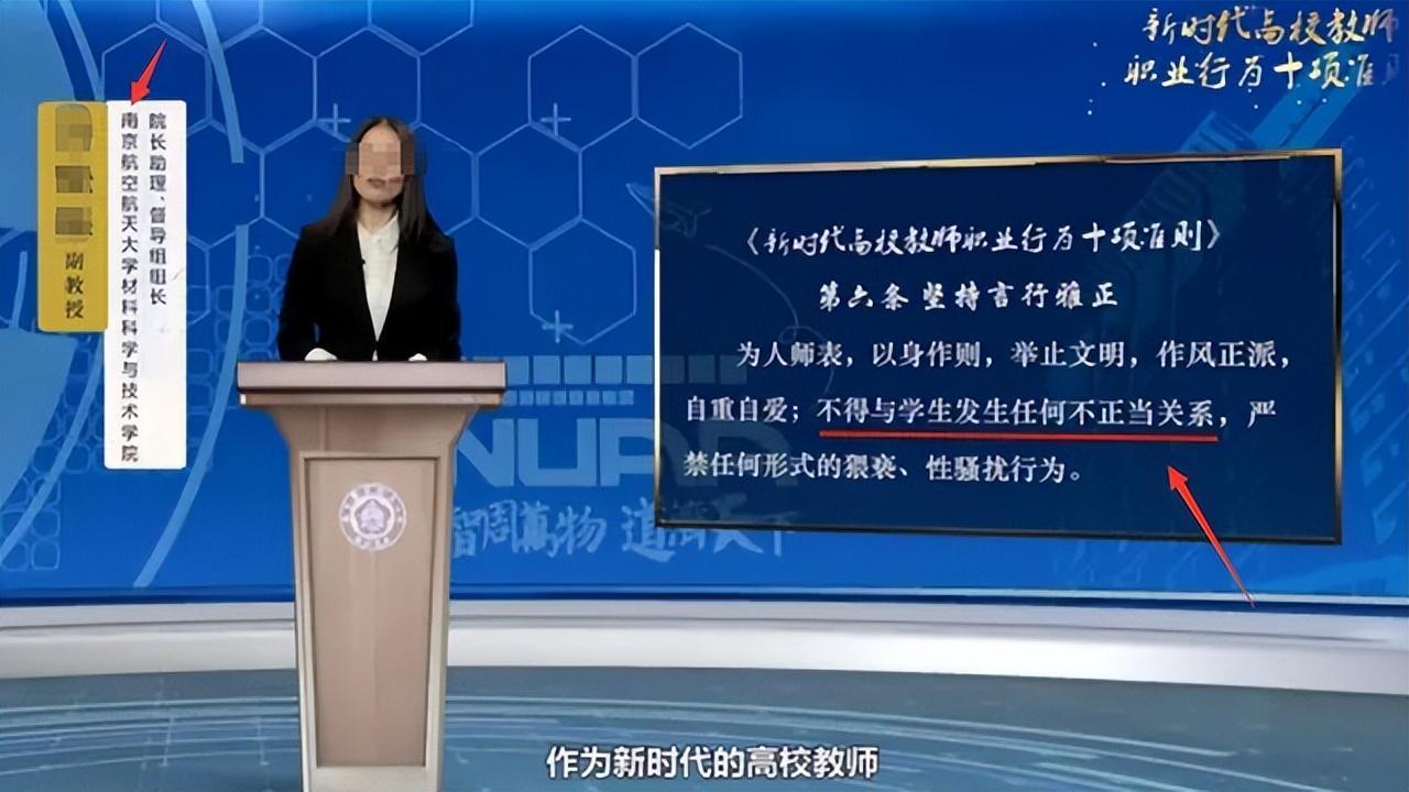 南航曾在學校宣講了高校教師職業行爲十大準則,其中第六條就明確規定老師和學生不得發生任何不正當關係。