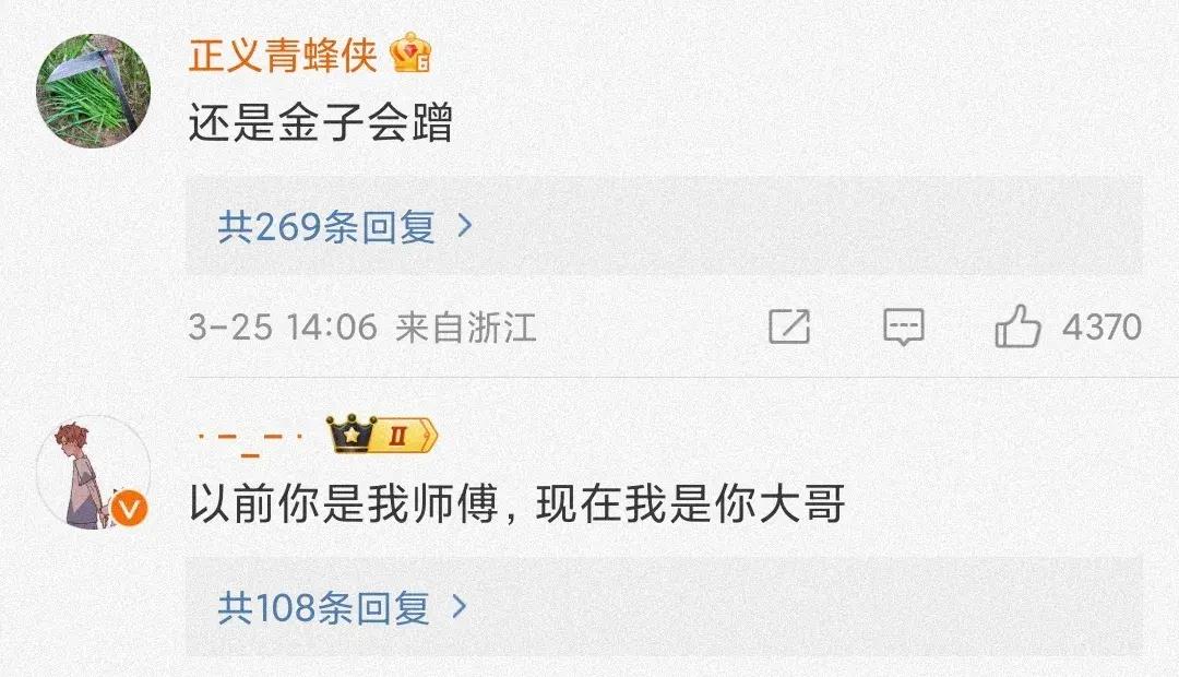 還是金子會蹭,刷禮物能開發票?以前你是我師傅,現在我是你大哥,老郭也算有同行祝賀了,沒有永遠的敵人,只有永遠的利益,成熟之後才發現,世間本就沒有對與錯,兩人沒準私下已經和解了。