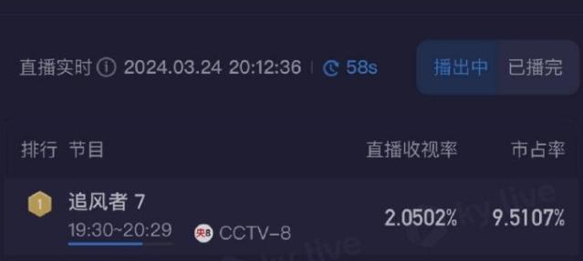 《追風者》首播收視即破1,並且收視隨着播出逐步走高,在最新更新的劇集裏,央視收視已經破2!