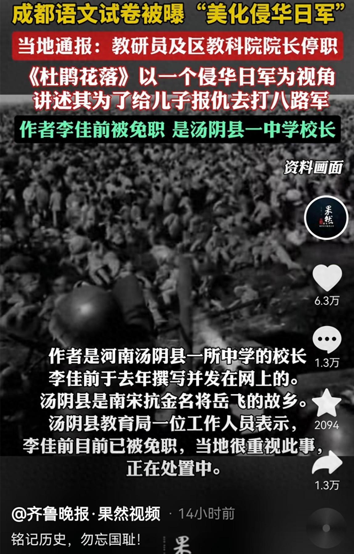 成都毒試卷後續:2位官員被拉下馬,李佳前被免職,試卷已被焚燒