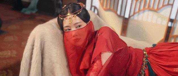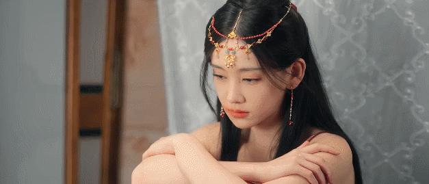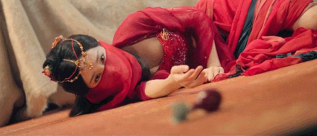 不慎被人下了藥的女主角,根本無法動彈,她被人穿上了紅色輕紗,露出胸前的白皙皮膚,和修長美麗的雙腿。