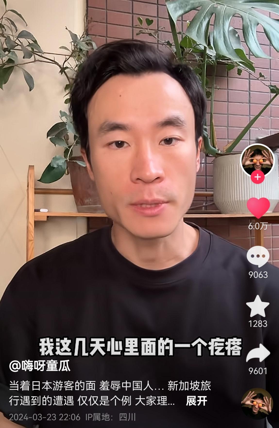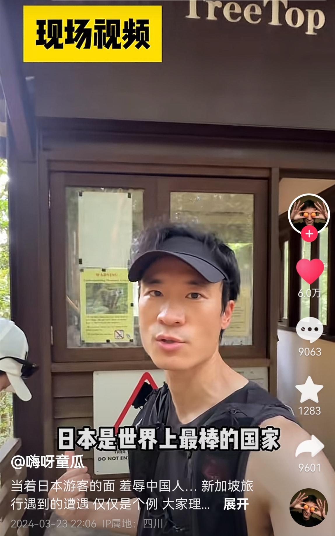 3月23日,旅遊博主童瓜在網上發視頻講述了他在新加坡的遭遇。