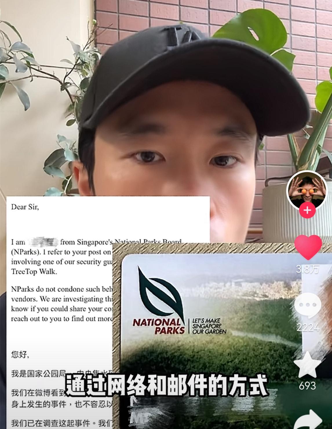 第二個是他聯繫了新加坡旅遊局,反饋他的遭遇。