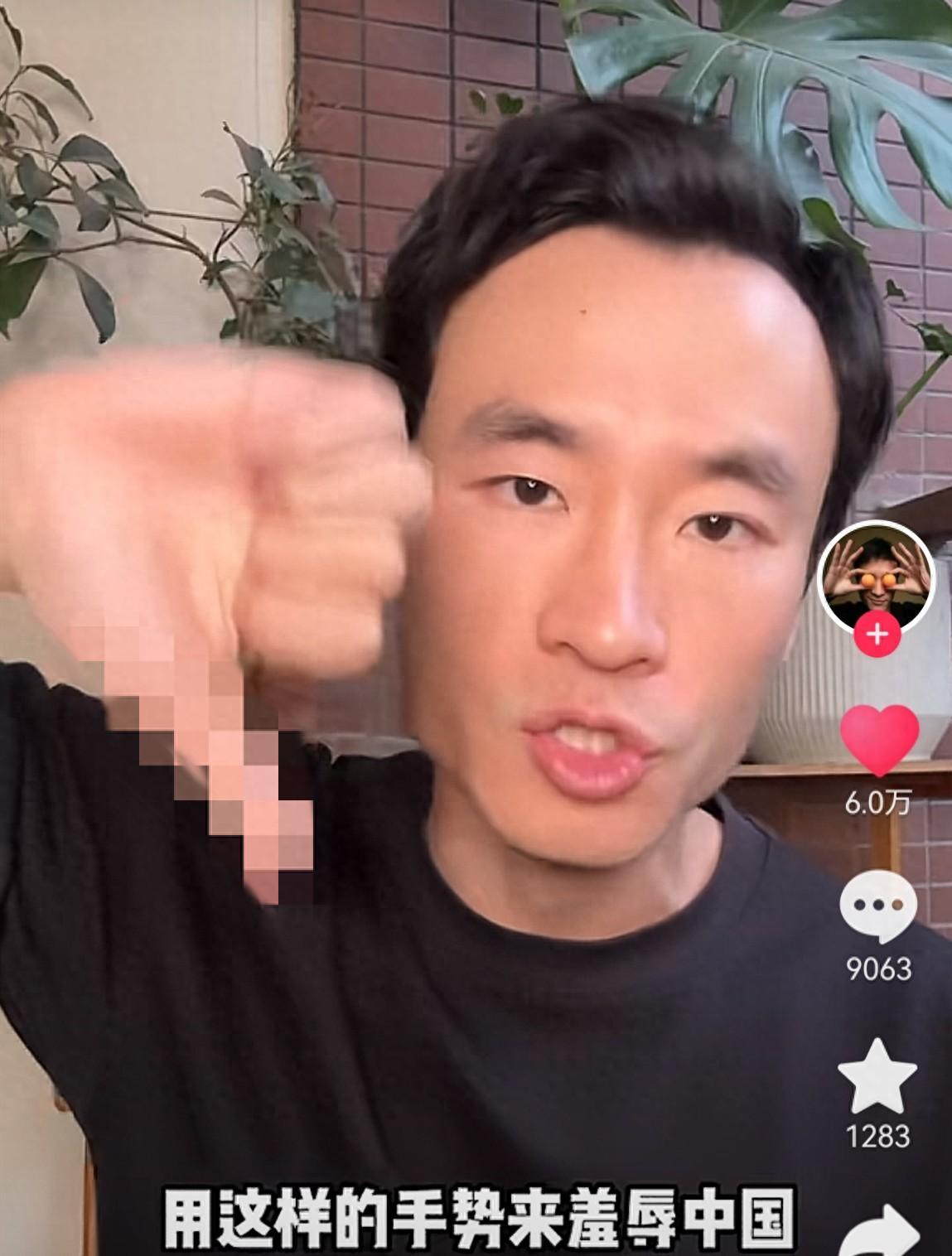 在旅遊完回來整理視頻素材的時候,童瓜發現該名工作人員竟然在他走出幾步之後,當着他後面的日本遊客的面,做出了大拇指向下的羞辱性手勢,用以羞辱中國人。