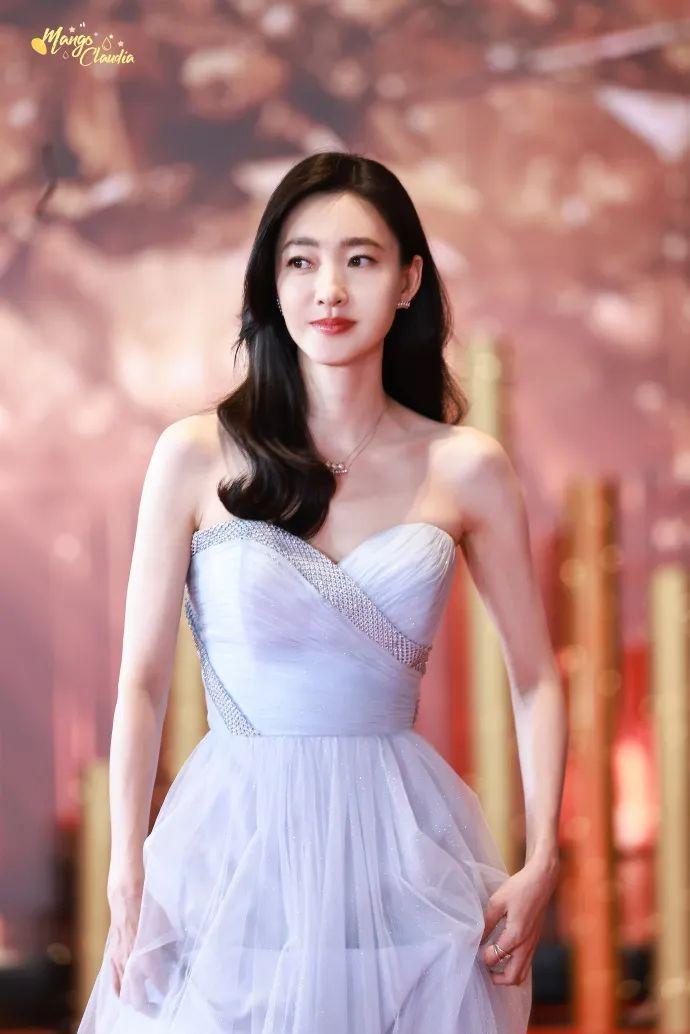 和林允一起走紅毯的董潔將高貴優雅發揮到了極致,簡簡單單的吊帶魚尾裙,很適合她的小骨架。