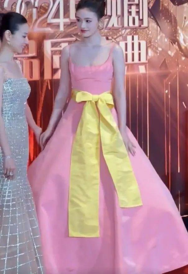和唐嫣一同出場的辛芷蕾在禮服選擇上有點過於“隨便”了。