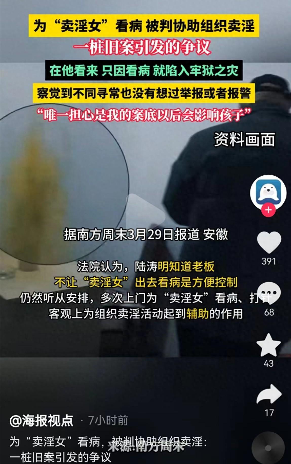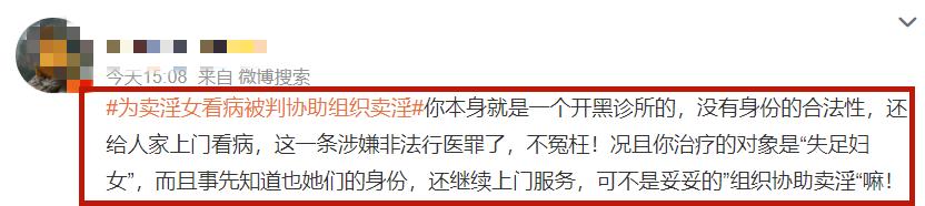 醫生爲失足婦女看病,被判協助組織賣淫,律師吵翻了,網友炸鍋了