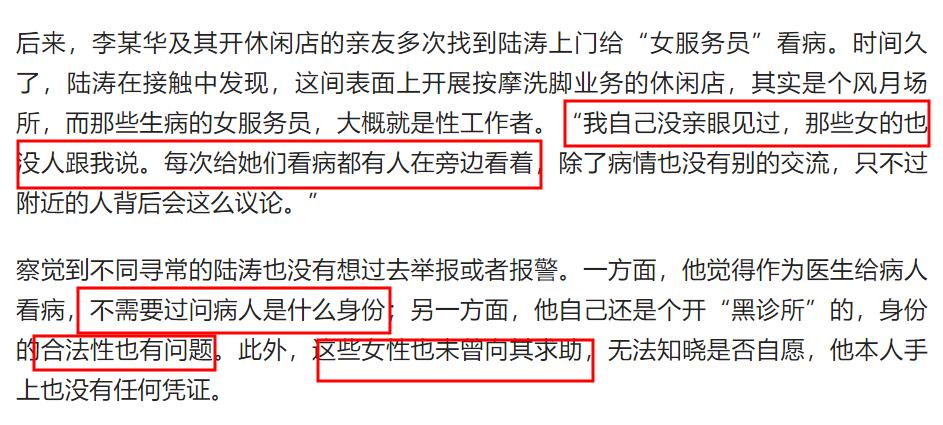 於是在這三重考慮之下,陸濤爲這些女服務員進行了約3年時間的看病行爲。