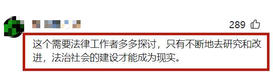 相對於這2撥網友的觀點明確,還有一撥網友認爲“這個問題需要法律工作者多探討,只有不斷的去研究和改進,法治社會的建設才能成爲現實。”