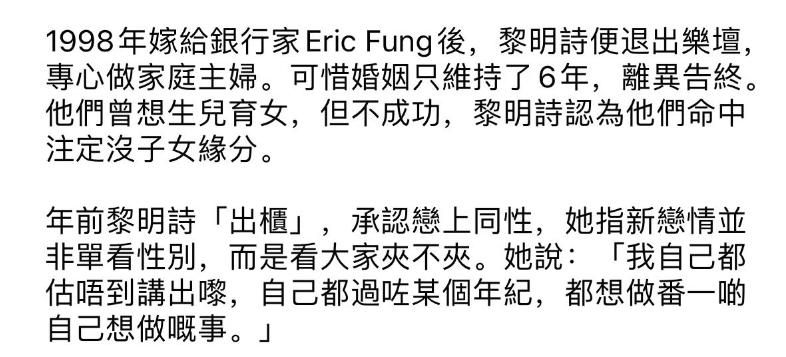 痛心!58歲香港知名女歌手黎明詩去世,曾公開出櫃與女友同居多年