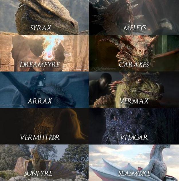 第一季劇情裏,伴隨着擁有馭龍屬性的坦格利安王族們出場,整季足足有10條龍登場亮相。