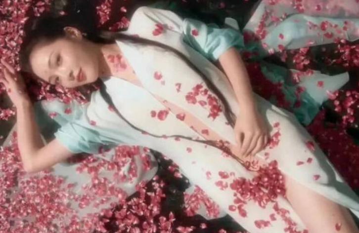 造型清涼橫臥花瓣中,輔以極具挑逗的眼神,秦可卿這滿滿的情慾畫風,誰看了都得被嚇一跳。