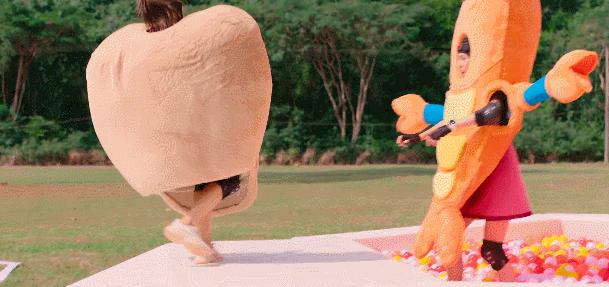 偶像和佳麗分組完成,他們必須按照給定圖片上美食,找到原材料,接力賽跑最後拍照就算完成。