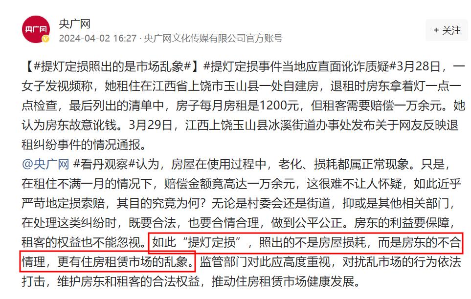 如此“提燈定損”,照出的不是房屋損耗,而是房東的不合情理,更有住房租賃市場的亂象。